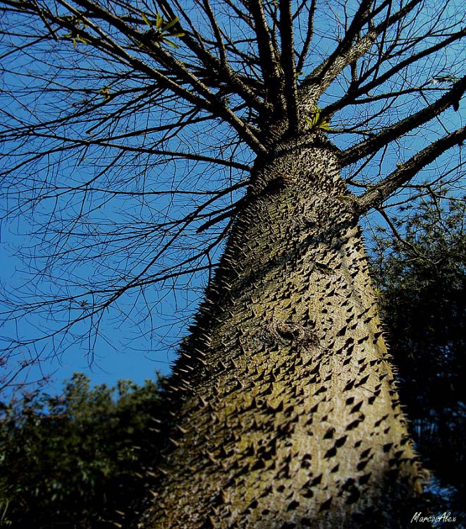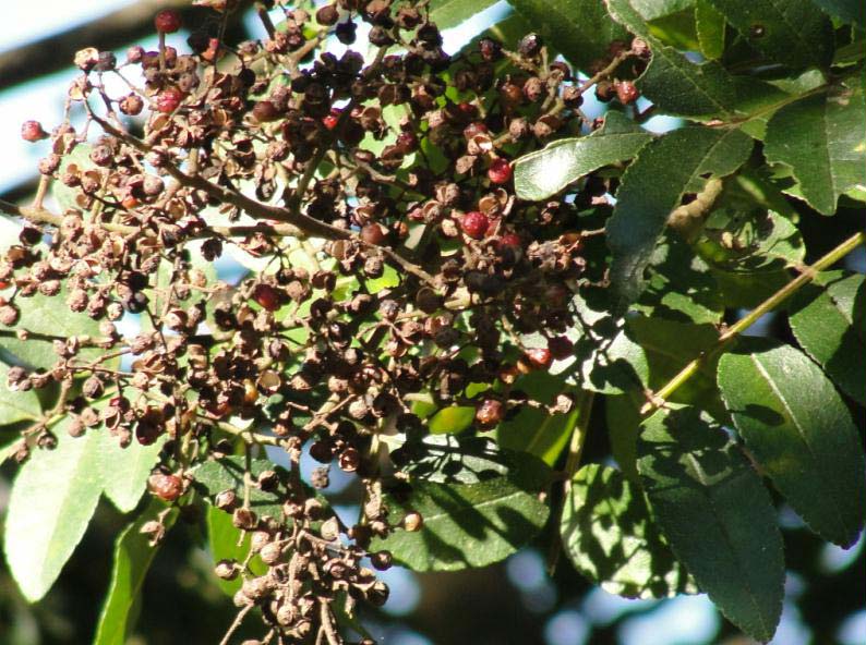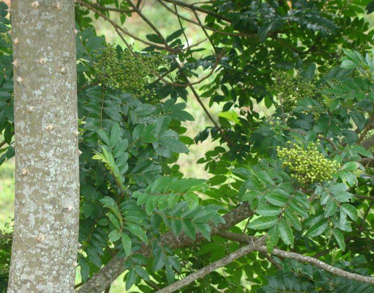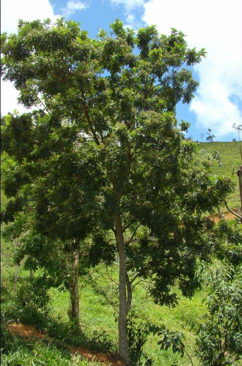 Árvore de pequeno a médio porte, 6 a 12 metros de altura. possui muitos acúleos, no tronco e folhas, longos e afiados. Folhas compostas, 10 pares de foliolos de 6 cm, duros com bordas levemente serrilhadas. Flores e frutos em cachos. Frutos pequenos ( 3 mm) redondos, que maduros ficam escuros e se abrem exibindo uma semente vermelha.